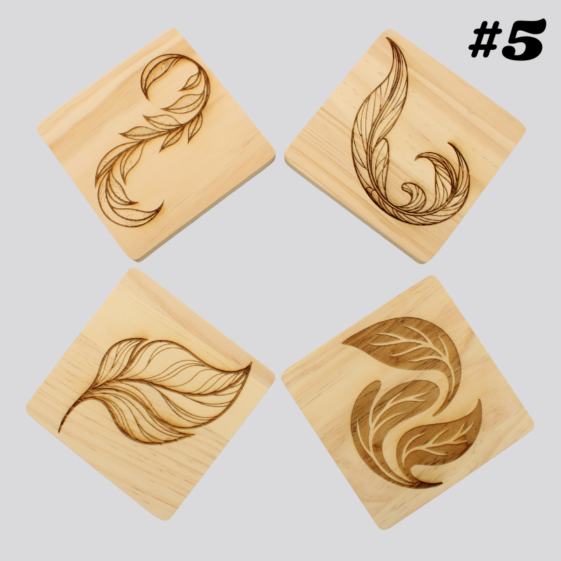 Add a touch of warmth and personalization to your home with these wooden laser engraved coasters. Each piece is engraved creating beautiful, detailed designs.